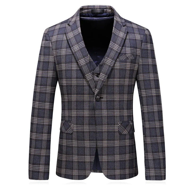 Good Price of Custom Made Tuxedos 2019 Slim Fit Formal Men's Fashion Plaid Groom Wedding Dress Suits 3 Piece Suit