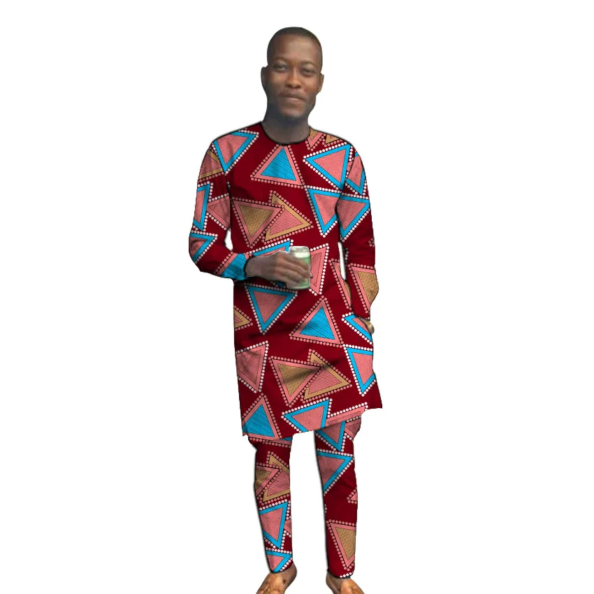 Cheap Offer for African clothing men's print long sleeve tops with trousers custom made fashion pant sets groom sui