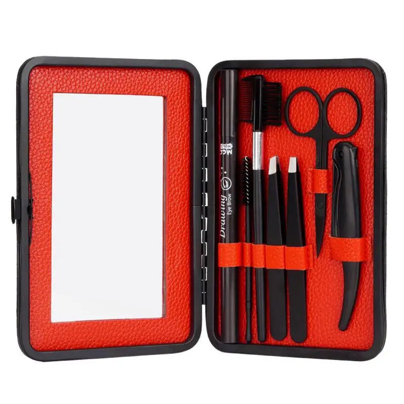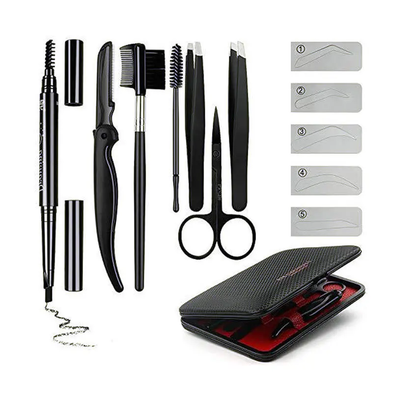 Good Chance of 13pcs Set Tool Storage Suit Leather Waterproof Eyebrow Grooming Men's Eyebrow Template Shaper Stain