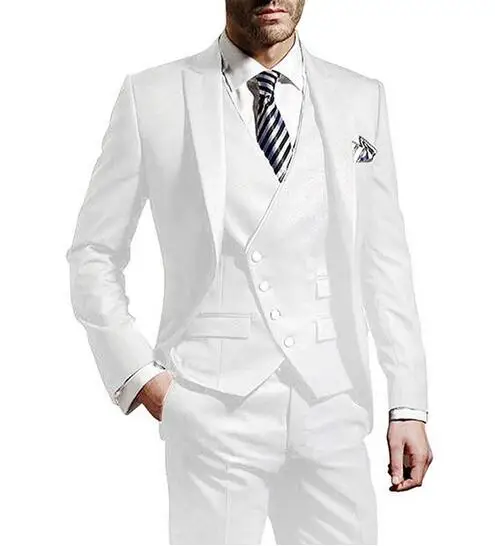 Good Chance of Elegant white Men's Suit 3 piece Suit (jacket + pants + vest) Men's Fashion Suit Wedding Groom Part