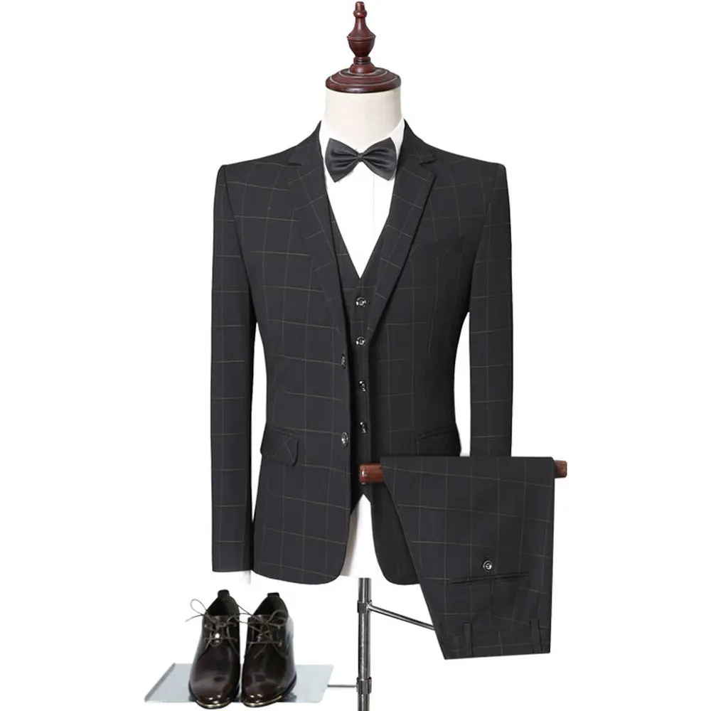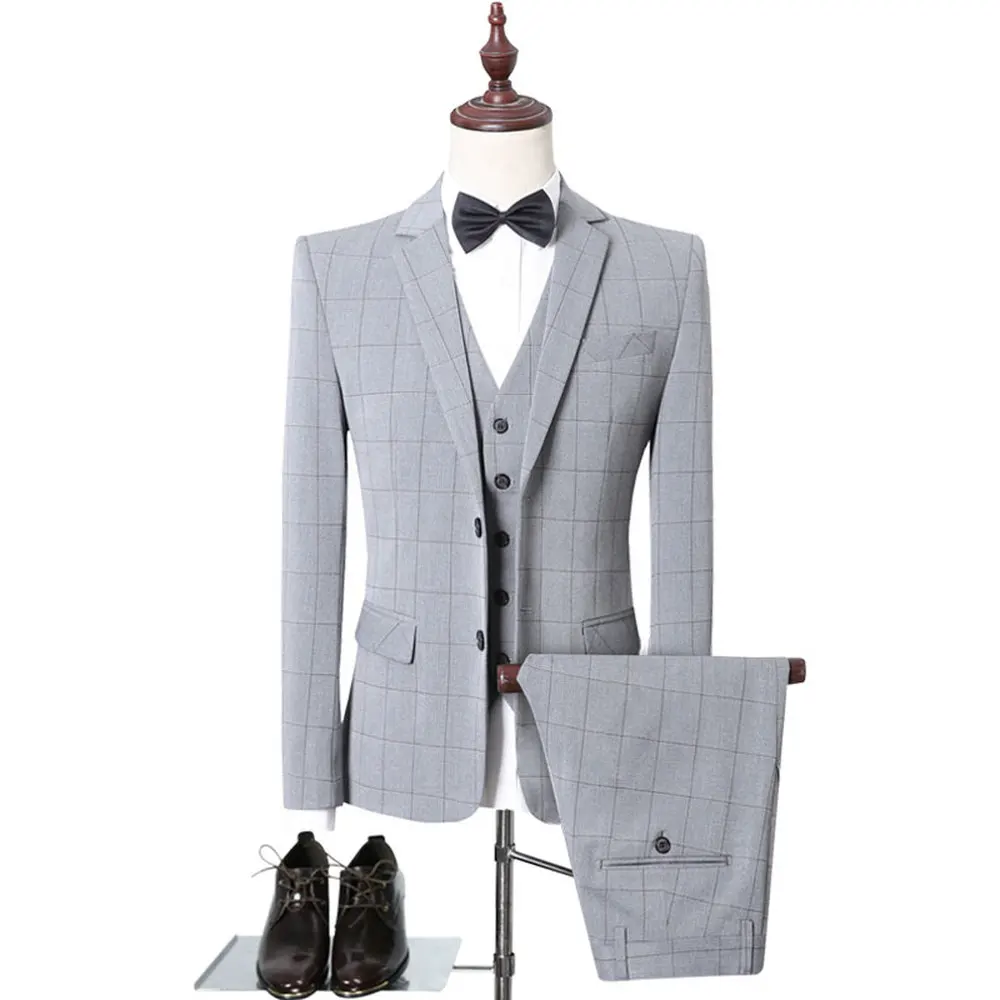 Special Price of Blazers Pants Vest 2019 Spring Autumn Fashion Suits Men's lattice Casual Business Formal Groom gett